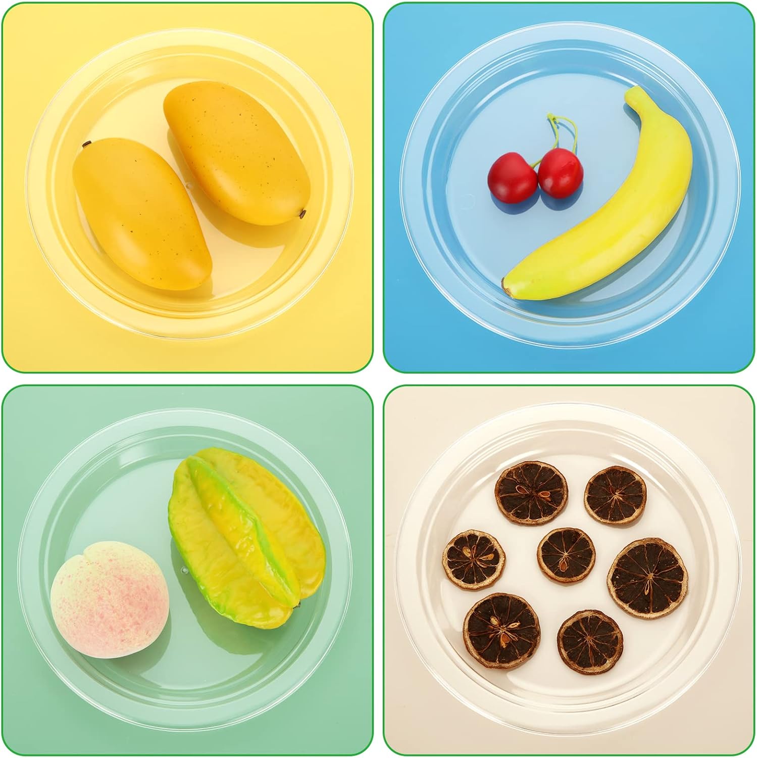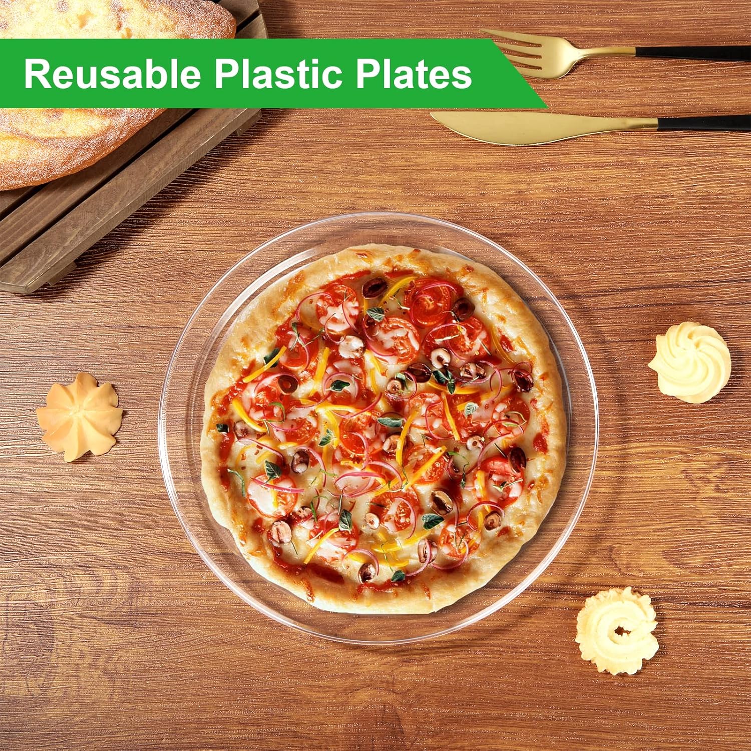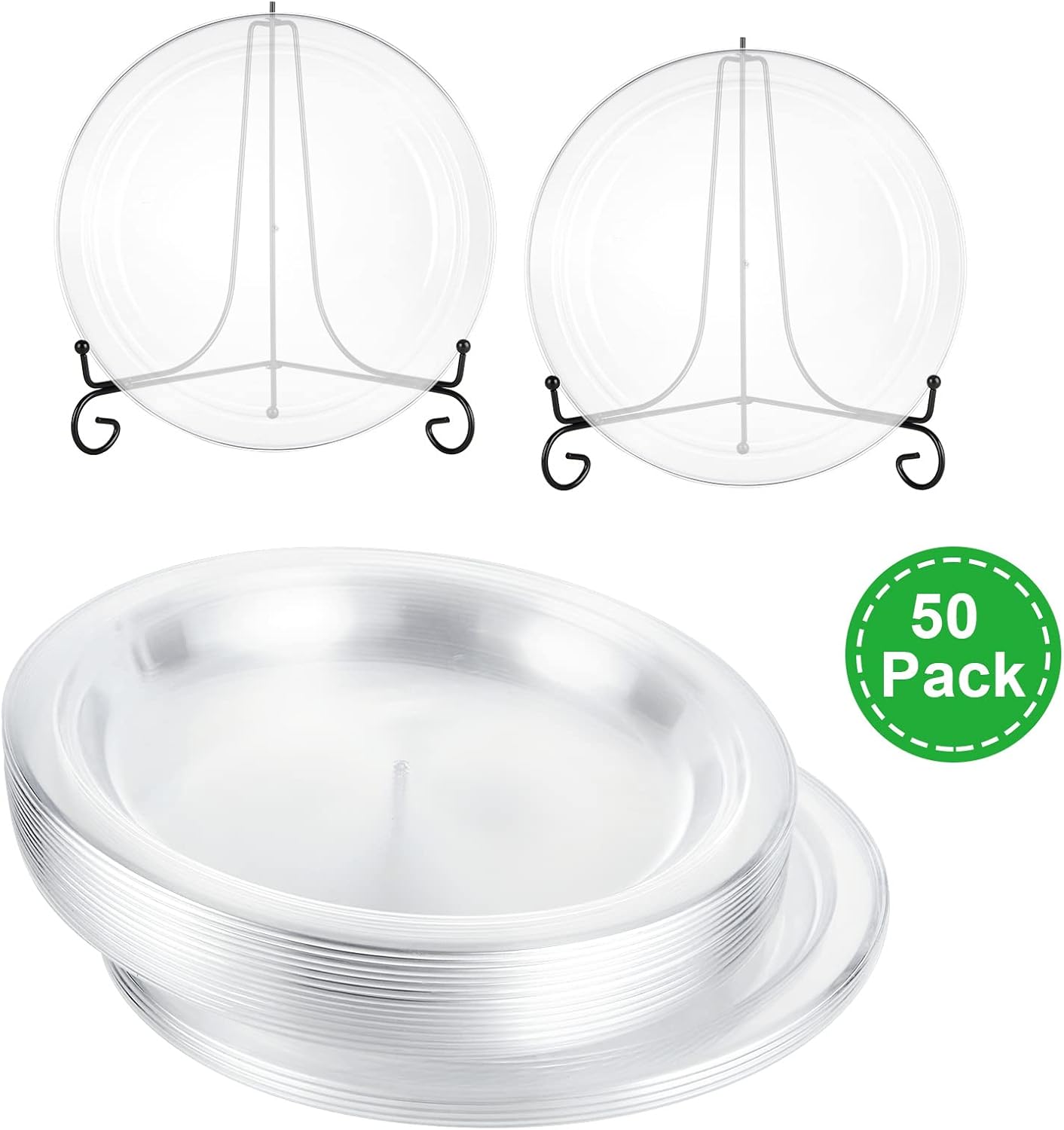 - Box contents: our package contains 50 plastic plates, which are enough for daily use. You can use these plastic plates reusable for all types of food, such as appetizers, biscuits, pastries and much more.