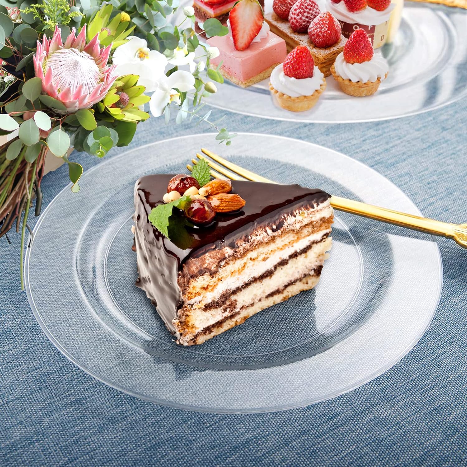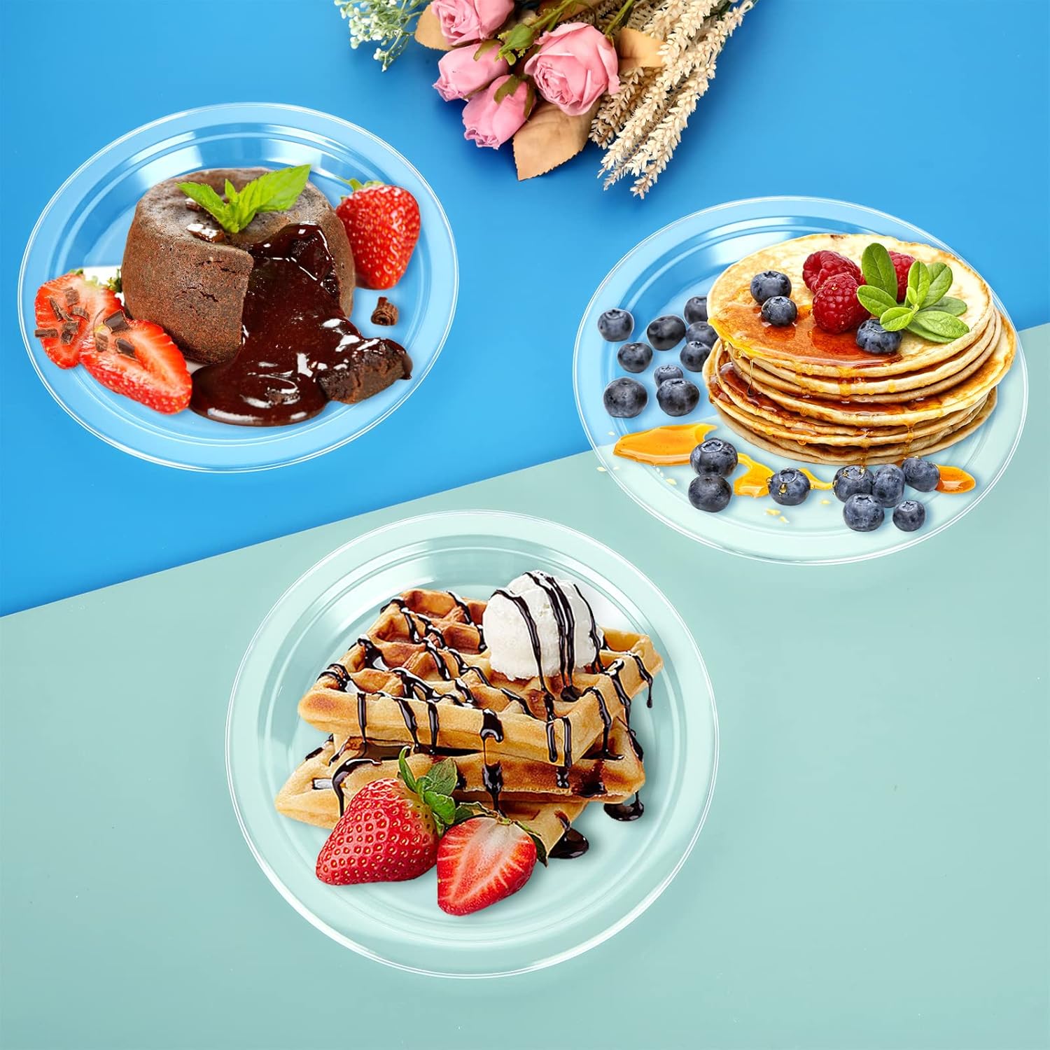 - High-quality materials: AKOLAFE transparent plastic plates are made of food-safe hard plastic, making them stronger and more durable than other clear plastic films. The transparent, crystal clear plastic material of the disposable plastic plate is durable, flexible and can be used again and again.