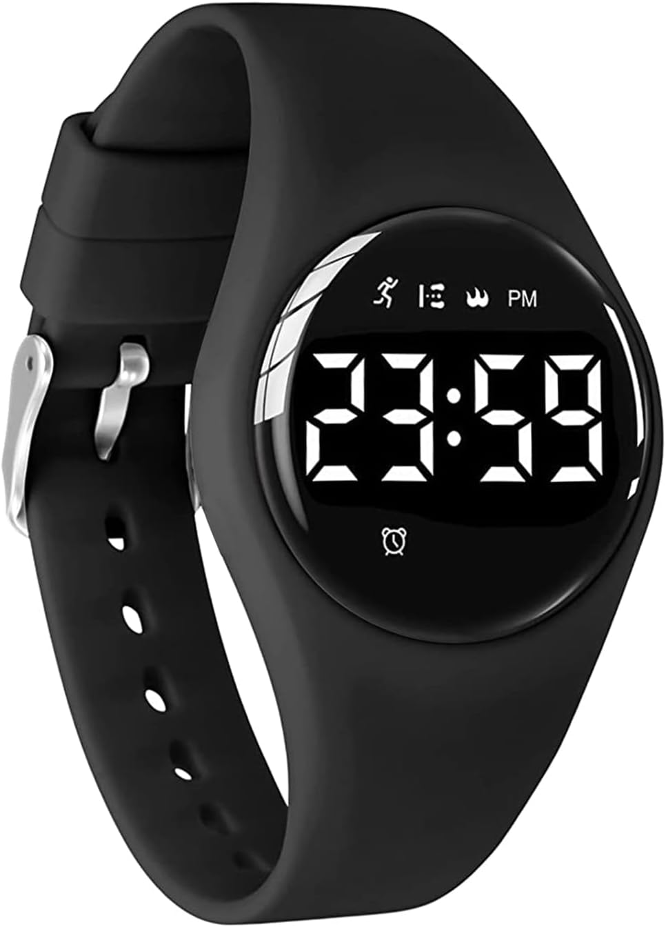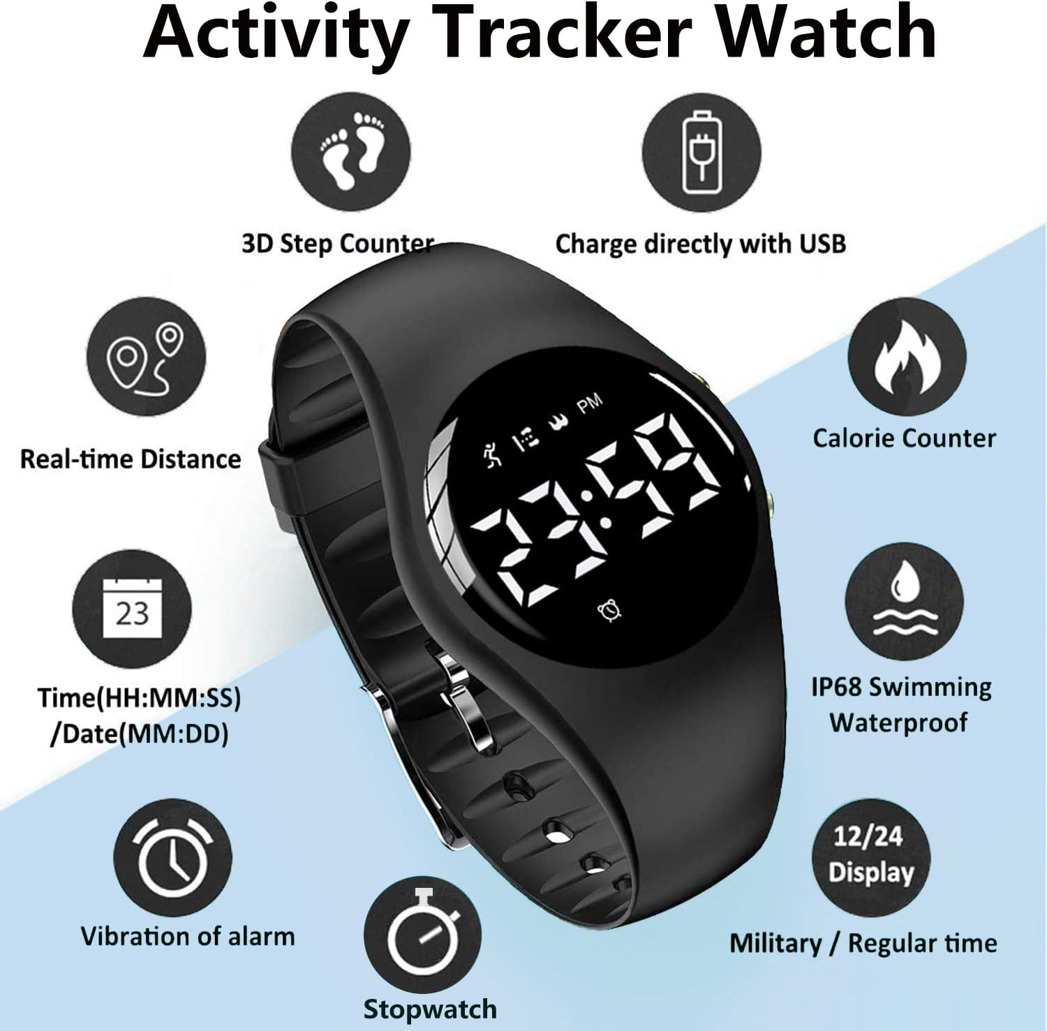 - Fitness Tracker Watch:Designed for kids and adults to intelligently track time/date, pedometer, real-time distance, calories, vibration alarm clock, etc. With digital LED display, bright and clear, easy to read.