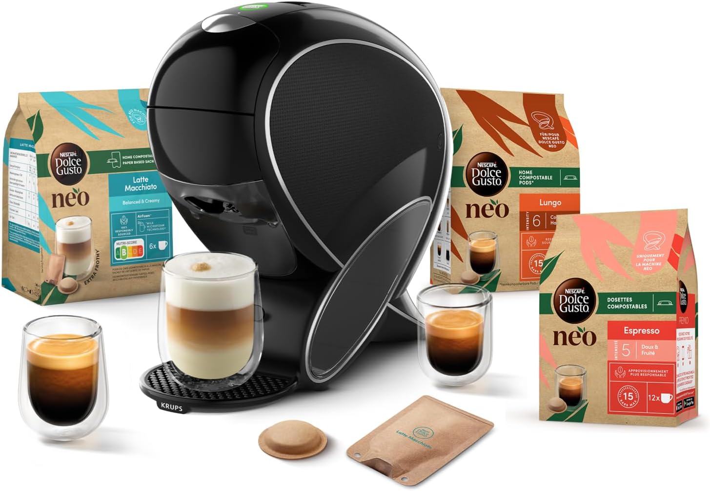 - Compostable dosages and recyclable paper-based bags: the NEO capsules have been certified by TÜV Austria for composting in the home and industry