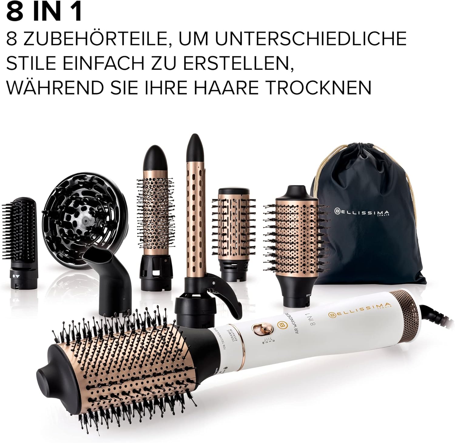- 8 in 1: hot air modelling tool with 8 accessories to easily create different styles when drying hair