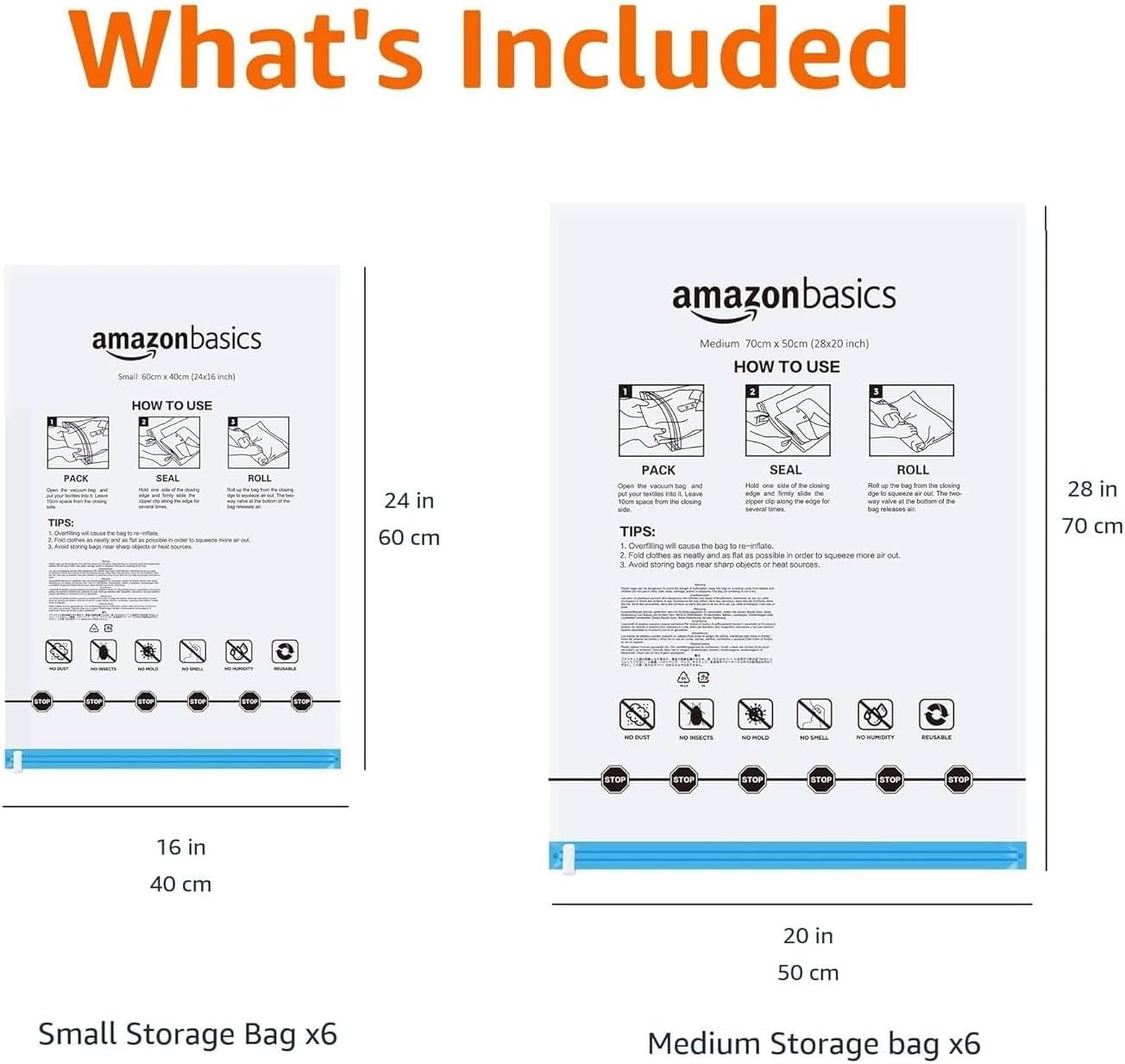 - 12 Pack Roll Up Travel Storage Bags for Clothes, Towels and More, Not Recommended for Duvet, Bulky Clothes Etc