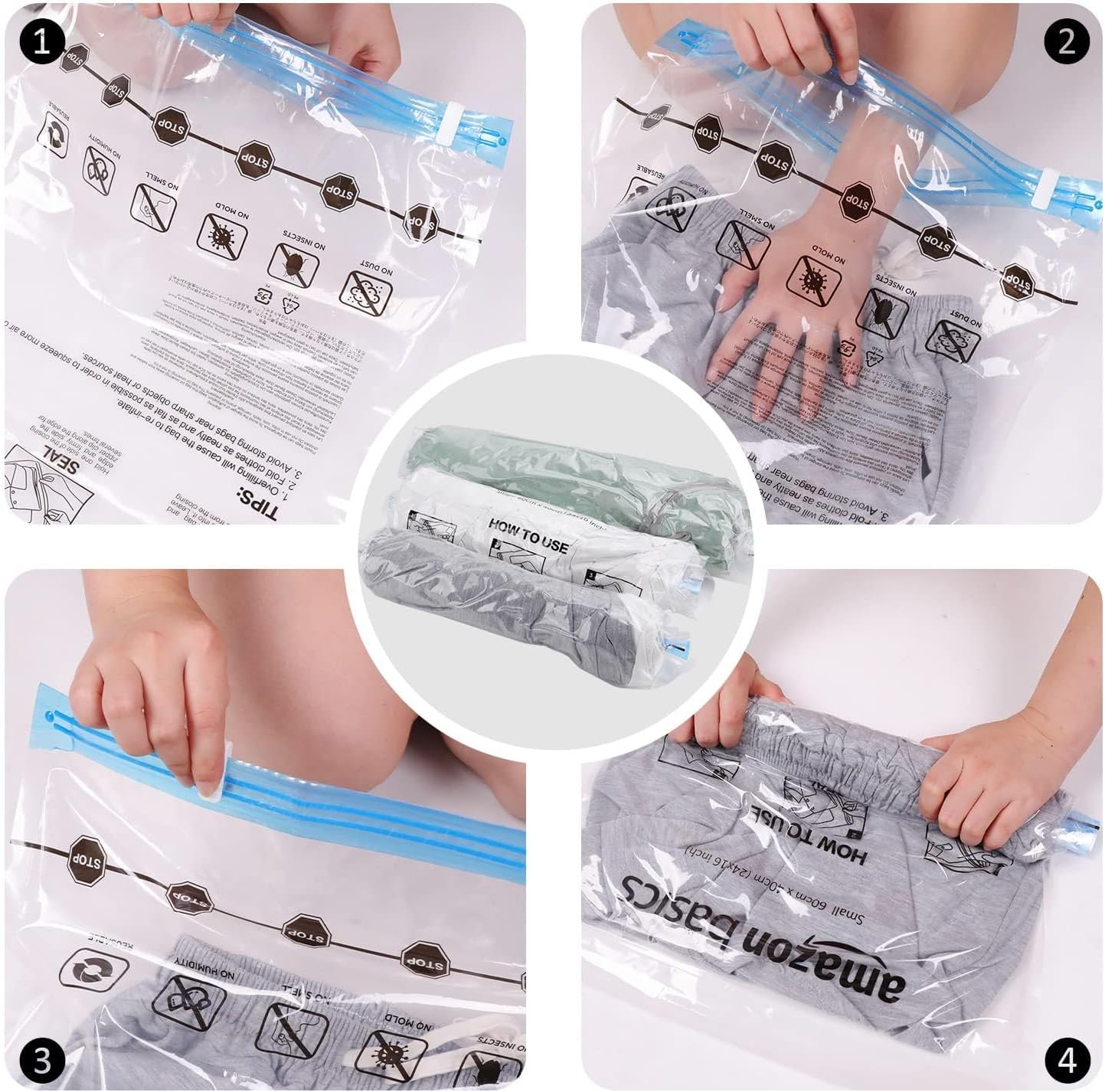 - No vacuum pump is required, simply place clothes in the bag, close the zips, roll up the bag from the zip side and the air is squeezed out from the bottom of the bag