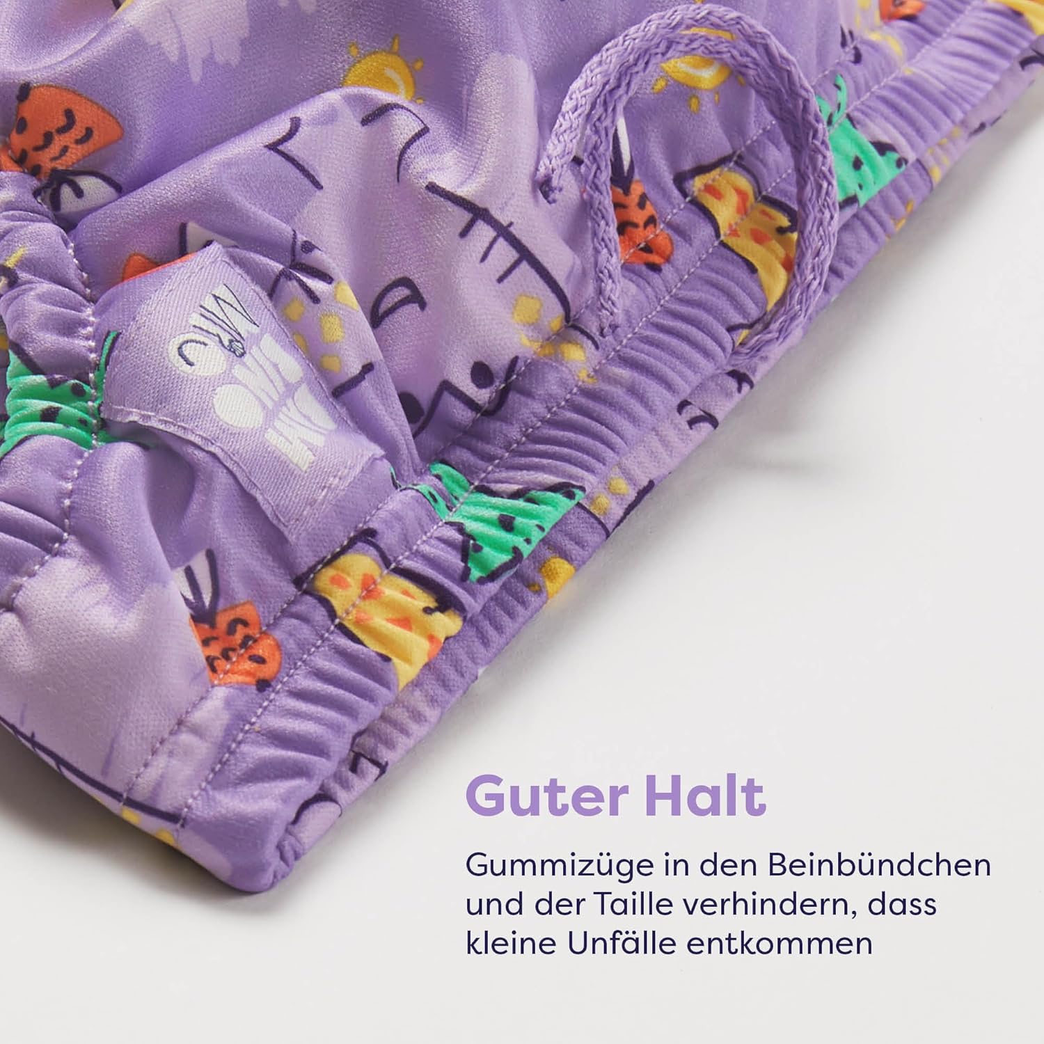 - Good hold – elastic bands in the leg cuffs and waist prevent small accidents from escaping.