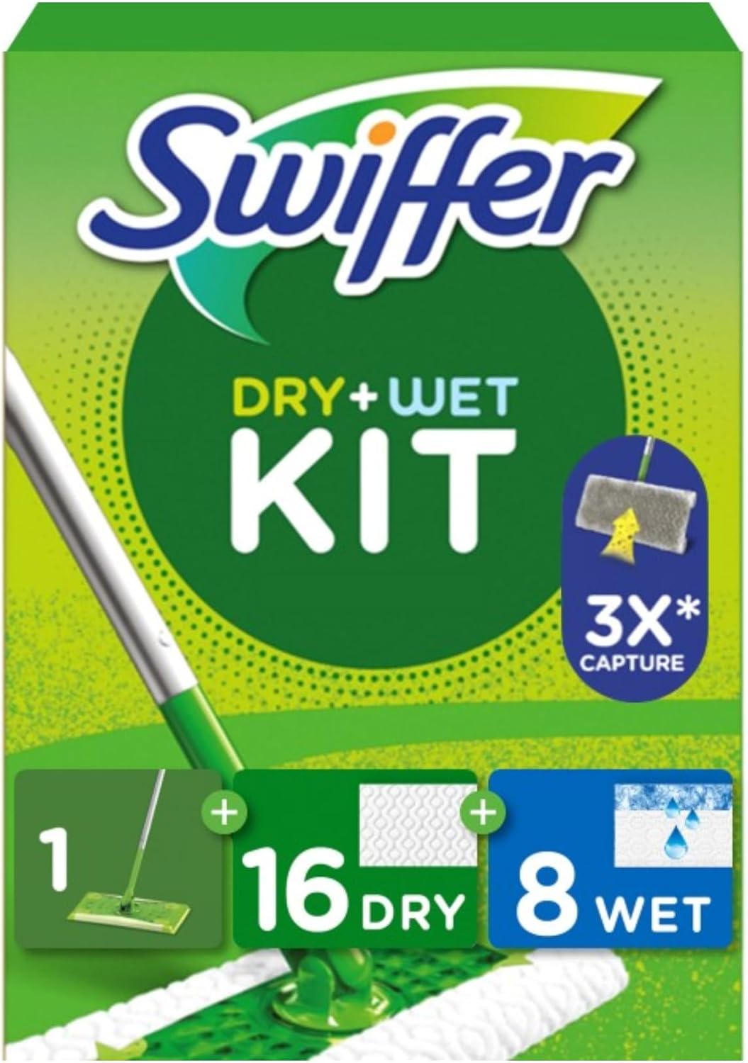 Set de mop Swiffer pentru podele uscate și umede, 1 lavetă, 16 lavete uscate și 8 lavete umede pentru curățarea rapidă și ușoară a podelelor dure