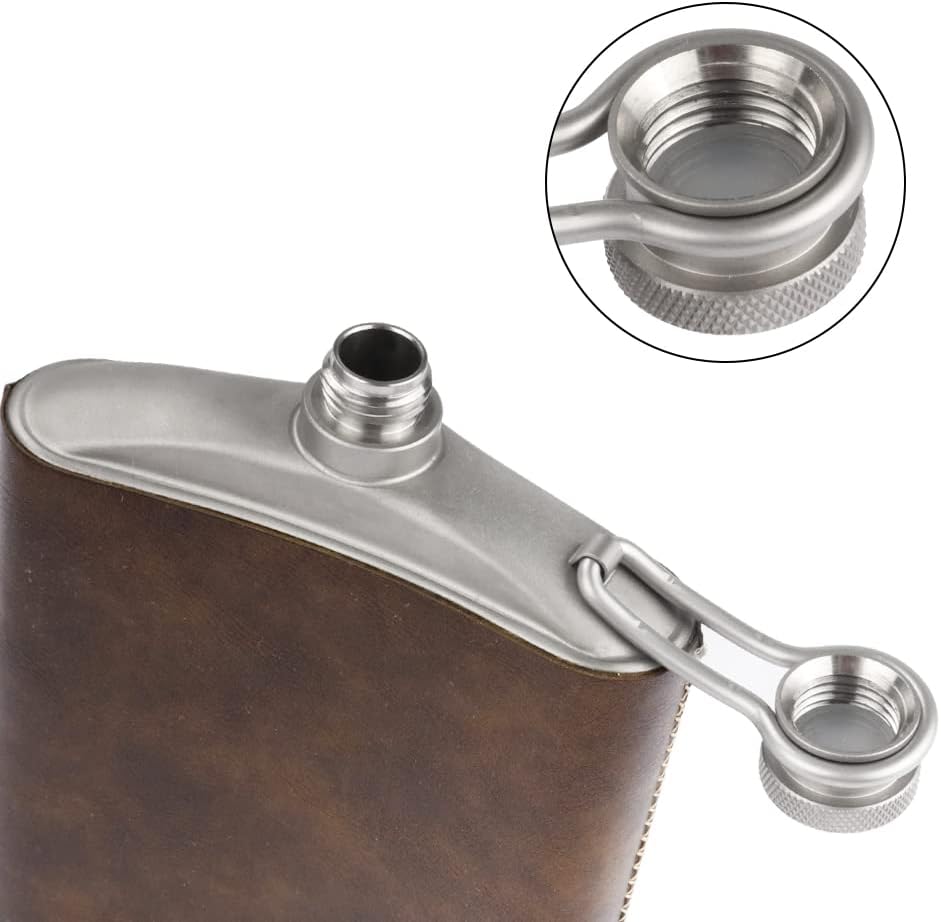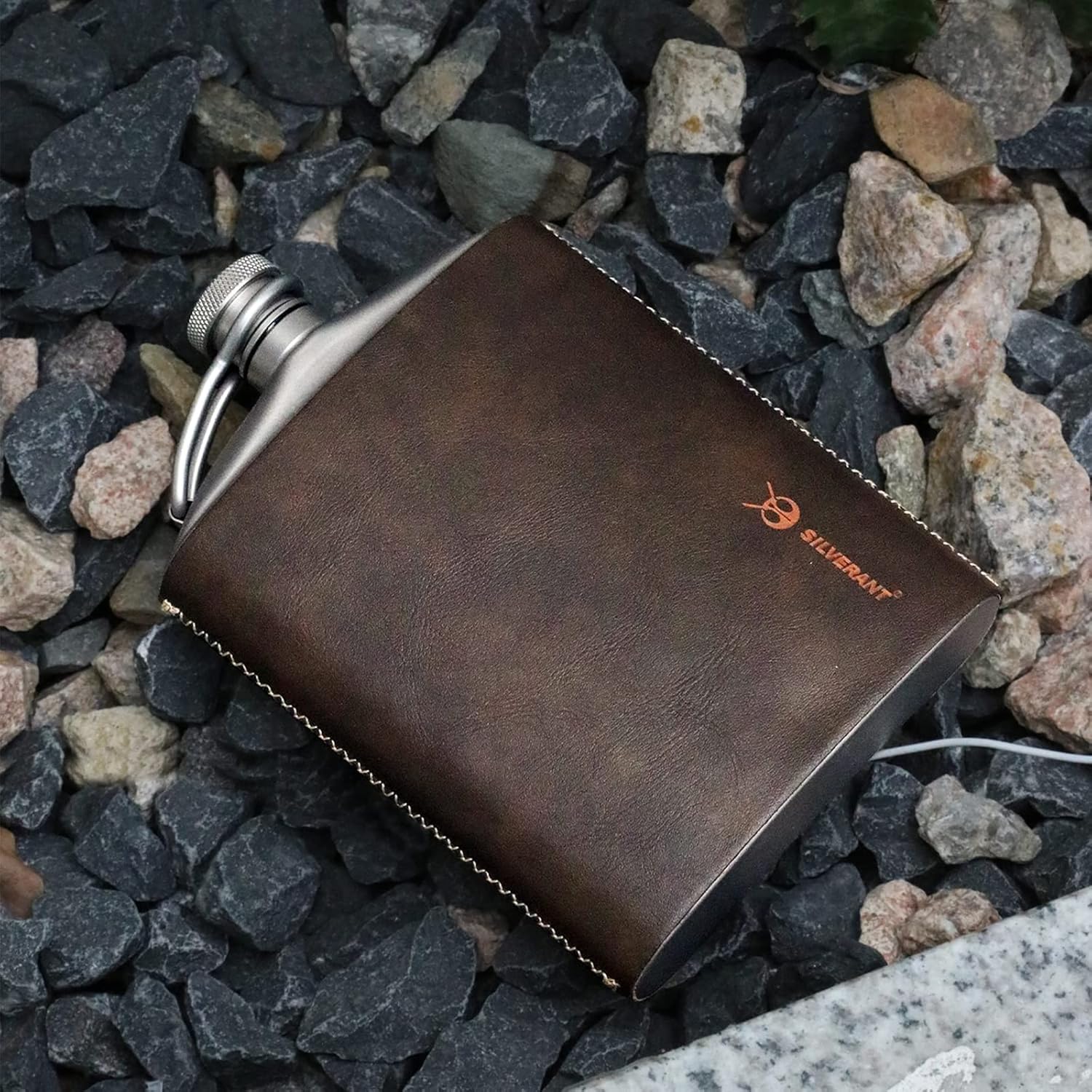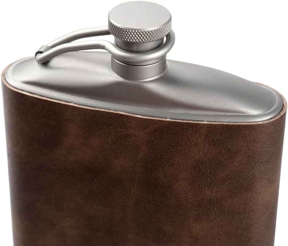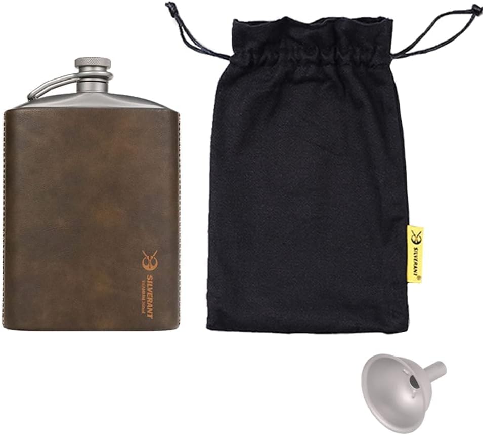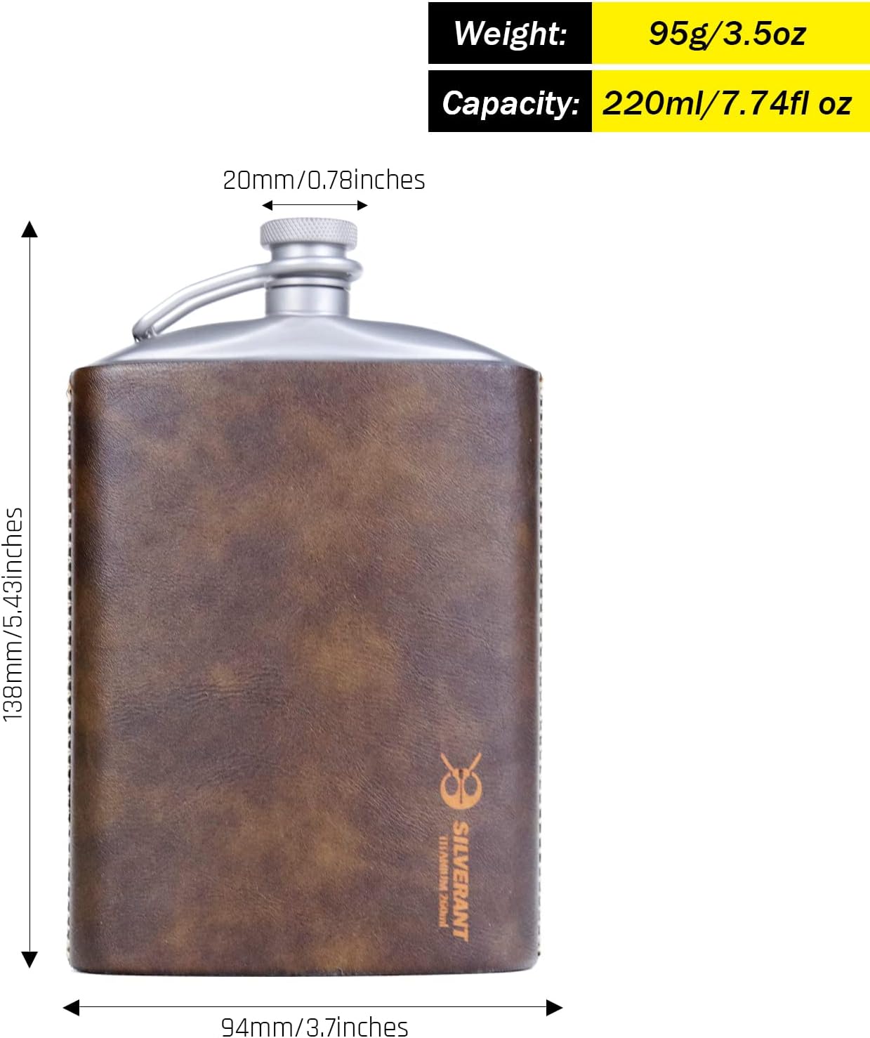 SILVERANT 248 ml Balon de titan, Sanblasted, Balon de șold ușor, Balon de buzunar pentru rucsac pentru camping, Husă din piele PU